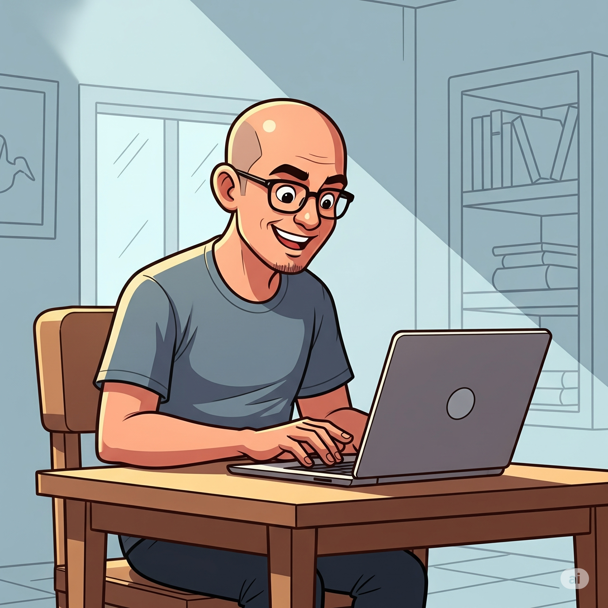Di pojokan kandang, duduk di meja sambil ngetik laporan sambil nguping suara sapi