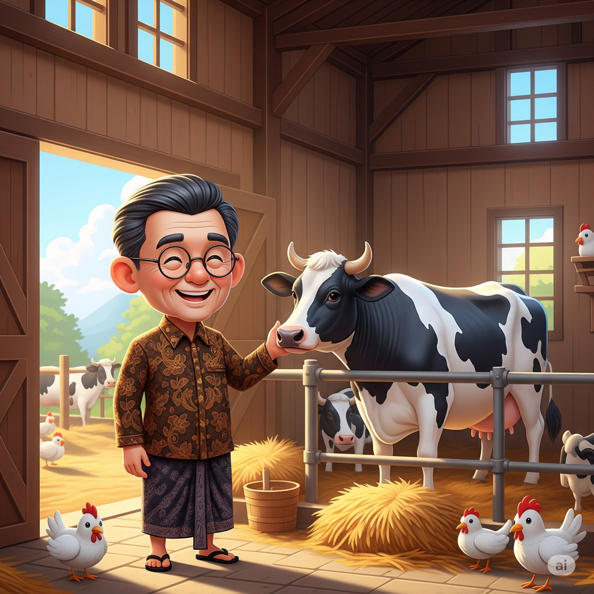 Sesekali ngobrol akrab dengan sapi—karena menurutnya, komunikasi adalah kunci, meski lawan bicaranya cuma bisa “mooo”